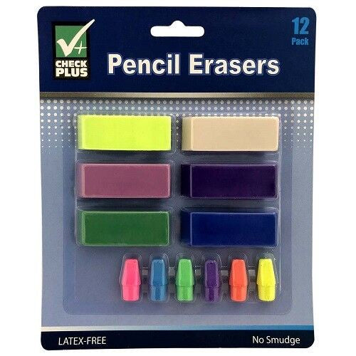 CHECK PLUS PENCIL ERASERS 12 COUNT