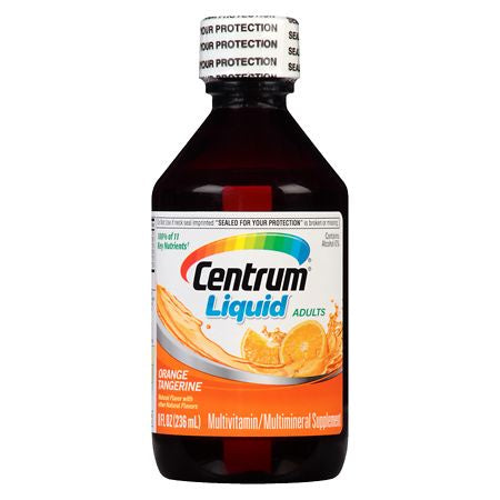 Liquid Multivitamin for Immune Support and Energy Centrum Liquid Multivitamin for Adults is the perfect multivitamin/multimineral supplement for adults who have difficulty taking tablets. Packed with 17 essential micronutrients this liquid multivitamin for women and men helps fill nutritional gaps and promotes full body wellness. These adult liquid multivitamins include antioxidant supplements such as vitamins C E beta-carotene and zinc for immunity support. This liquid multivitamin with iron and B vitamins also delivers the nutrients and energy supplements your body needs to support your daily energy needs helping you metabolize fats carbohydrates and proteins effectively. Available in a tangy citrus flavor these liquid vitamins for adults provide the recommended amount of key nutrients to maintain your overall health. Take one tablespoon daily with food. Feed your cells fuel your life with Centrum the #1 doctor and pharmacist recommended brand.