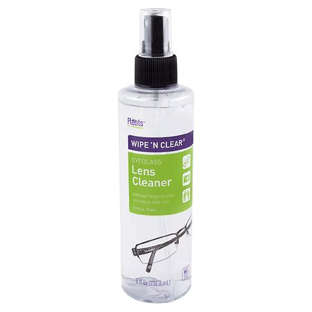 Keep your spectacles clean shiny and streak-free with the help of Flents Wipe N Clear Eyeglass Lens Cleaner 8 fl oz 236 mL. This product is easy to use and works to thoroughly clean a wide variety of glass and plastic surfaces ranging from eyeglasses to computer monitors. The Flents eyeglass lens cleaner features a streak-free formula that makes keeping devices clean a breeze. Just spritz and wipe away with a soft microfiber cloth to reveal clearer cleaner screens and lenses. This highly versatile Wipe N Clear lens cleaner product works to removes smudges dirt fingerprints and oils making it easy to keep eyeglasses from getting foggy. You may also try using it on everything from cell phones to mp3 players computer screens television screens handheld consoles camera lenses and much more. Pair Flents Wipe N Clear Eyeglass Lens Cleaner 8 fl oz 236 mL with a microfiber cloth for a spotless clean and streak-free shine.