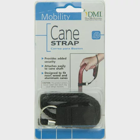 Duro-Med Universal Cane Strap, BlackThe cane strap provides added security, attaches easily to cane shaft, lightweight strap slips confortably over wrist and it is designed to fit most wood and aluminum canes.Designed to fit and easily attach to most wood and aluminum canesprevents you from dropping your cane.The Cane Strap contains natural rubber latex, which may cause allergic reactions in some individuals.The black 9 Inches loop strap allows you to comfortably wear the Cane Strap aroundyour wrist while the cane is in use.Attaches easily to the shaft of most canes.