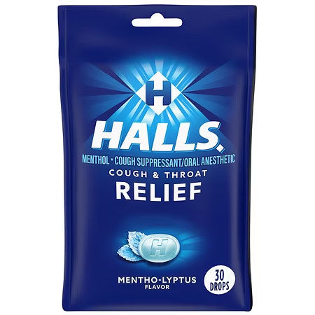 HALLS Relief Mentho-Lyptus Cough Drops are ready for whatever life throws or coughs your way. With 5.4 mg of menthol per drop these eucalyptus cough drops relieve coughs soothe sore throats and cool nasal passages to quickly relieve your worst symptoms. Whether you re using these cough suppressant drops for sore throat relief cough relief or as an oral anesthetic dissolve one drop in your mouth slowly and repeat every two hours as needed. HALLS Relief cough drops are formulated for adults and children five years and older. These sore throat drops are individually wrapped and come in a resealable bag for portability and freshness making them perfect for a healthy gift or care package. This bag holds 30 drops.