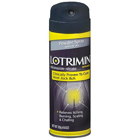 Get relief from the jock itch symptoms of itching burning cracking and scaling skin with Lotrimin Jock Itch Powder Spray. The active ingredient in this fungus treatment is miconazole nitrate which helps to relieve the symptoms of jock itch and is clinically proven to cure most jock itch infections. Soothe itchy cracked skin on your groin and inner thighs with this spray powder formula that?s easy to apply to the body and reach those hard-to-reach places in the crotch area of the body. Fight fungus with the power of Lotrimin AF Jock Itch Powder Spray ? your tinea cruris is no match for this antifungal spray which works to control the fungus that causes jock itch. Safe for kids over 2.
