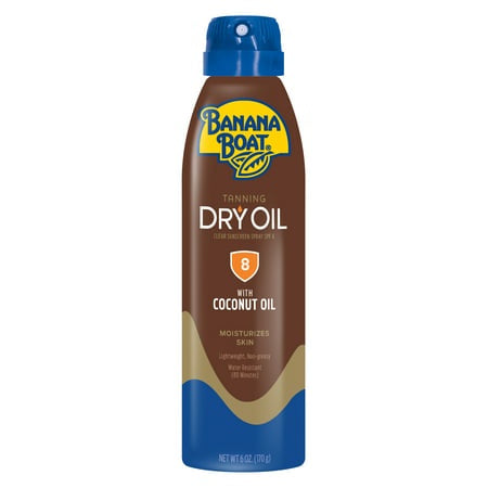 Now with ARGAN oil the unique lightweight dry oil formula of Banana Boat Dry Oil Clear Spray Sunscreen goes beyond sun protection leaving your skin feeling silky-smooth. Banana Boat Dry Oil Clear Spray Sunscreen Broad Spectrum SPF 8 provides UVA and UVB PROTECTION. This NON-GREASY and LIGHTWEIGHT dry oil spray now contains ARGAN OIL to leave your skin feeling SILKY-SMOOTH. WATER RESISTANT for up to 80 MINUTES. Banana Boat Dry Oil Clear Spray Sunscreen Broad Spectrum SPF 8 provides UVA and UVB PROTECTION. This NON-GREASY and LIGHTWEIGHT dry oil spray now contains ARGAN OIL to leave your skin feeling SILKY-SMOOTH. Banana Boat Dry Oil Clear Spray is WATER RESISTANT for up to 80 MINUTES. Banana Boat Dry Oil Clear Sunscreen Spray SPF 8 6 oz: