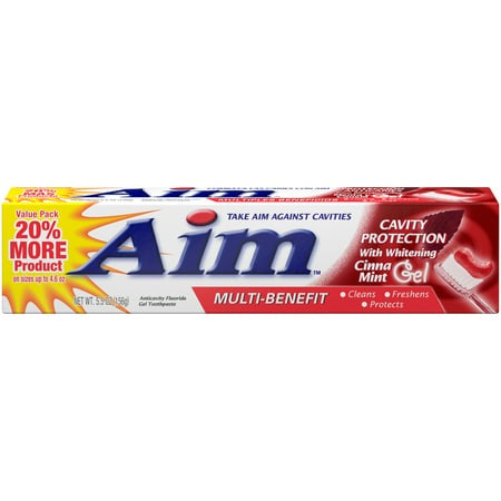 Take Aim against cavities. The great-tasting gel toothpastes that provides cavity protection whitening.
