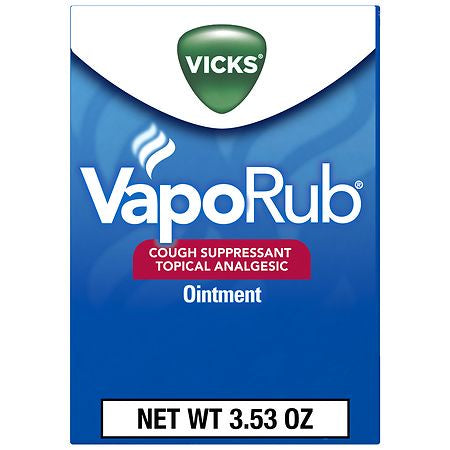 Vicks VapoRub topical cough suppressant is brought to you by the world's #1 selling OTC cough and cold brand*! Vicks VapoRub is a topical cough over-the-counter medicine with powerful Vicks vapors. It works quickly to relieve coughs so you can breathe easier. Vicks VapoRub is specially formulated with three active cough suppressants: menthol, camphor, and eucalyptus oil. To use, rub a thick layer of the medicated ointment on your chest and throat to temporarily relieve cough due to minor throat and bronchial irritation associated with the common cold. Keep clothing loose around throat and chest to allow the Vicks Vapors to reach the nose and mouth and go straight to the source of your cough. Use up to three times daily or as directed by a doctor for soothing and comforting relief. VapoRub can also be used as a topical analgesic to temporarily relieve minor aches and pains in your muscles and joints. To use for muscle and joint aches and pains: apply to affected area not more than three to four times daily.*N