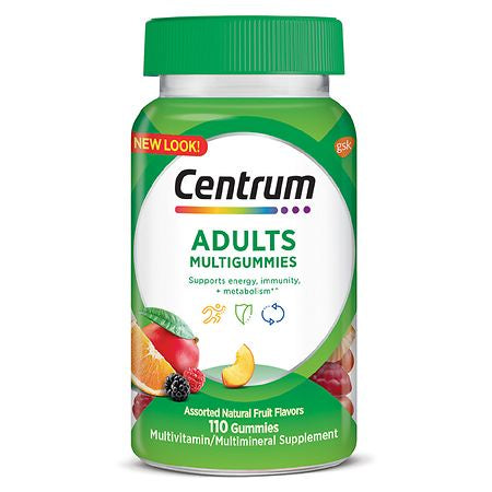 Gummy Multivitamins for Adults with More Vitamin D3 than Any Other Gummy Centrum MultiGummies Adult Multivitamin Gummies are a multivitamin/multimineral supplement that contains more vitamin D3 than any other gummy delivering key nutrients that help support your energy immunity and metabolism in an easy-to-take multivitamin gummy form. These great-tasting gummy multivitamins for men and women have 100% or more of the recommended daily value of vitamins B12 D and E. Each gummy multivitamin contains antioxidant supplements for immunity support and energy supplements like B vitamins to support your daily energy needs and help your body metabolize fats carbohydrates and proteins. These assorted fruit-flavored gummy multivitamins for adults are made with natural fruit flavors and no artificial sweeteners. Support your body head to toe by taking two gummies every day with or without food or water. Feed your cells fuel your life with Centrum the #1 doctor and pharmacist recommended brand.