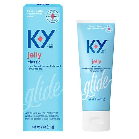 K-Y Jelly Lube is a thick gel that effortlessly glides on and stays where you want it to quickly preparing you for intimacy. Our classic water-based lube that can help you glide into a wetter better experience every day. Just what the doctor recommended. Now we?re talking. Our NEW Water-based Jelly formula gives you extra comfort so you can both enjoy sex. K-Y Jelly lube is compatible with latex condoms and sex toy friendly. K-Y is the #1 Doctor recommended personal lubricant brand. This product contains one 2 FL OZ bottle. This product is also available in 4 FL OZ. Our products are delivered in discreet packaging with no indication of parcel contents.