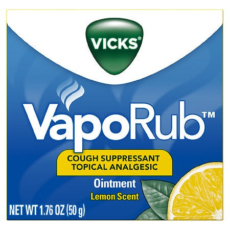 Vicks VapoRub Lemon is a topical cough suppressant brought to you by the world s #1 selling OTC cough and cold brand*! Experience the power of the Vicks Vapors you know and love in a refreshing lemon scent. Vicks VapoRub is a topical cough medicine with medicated vapors. It works quickly to relieve coughs so you can breathe easier. Vicks VapoRub is specially formulated with three active cough suppressants: menthol camphor and eucalyptus oil. To use rub a thick layer of the medicated ointment on your chest and throat to temporarily relieve cough due to minor throat and bronchial irritation associated with the common cold. Keep clothing loose around throat and chest to allow the Vicks Vapors to reach the nose and mouth and go straight to the source of your cough. Use up to three times daily or as directed by a doctor for soothing and comforting relief. VapoRub can also be used as a topical analgesic to temporarily relieve minor aches and pains in your muscles and joints. To use for muscle and joint aches an