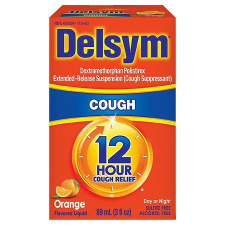Delsym has a full line of cough products for both adults and children. This includes 12 hour products which provides cough relief with every dose as well as Adult Cough+ and Children Cough+ products which relieve cough as well as other cold symptoms.Delsym Adult 12 hour Cough Medicine provides powerful Cough relief for 12 Good Hours. It provides cough relief that extends up to 12 hours to help alleviate your nagging cough. Delsym is the #1 Pharmacist Recommended Cough Suppressant Brand*. This product contains one 3 FL OZ bottle and is of Orange Flavor. It is also available in Grape flavor. Delsym 12 hour range is also available for Children.SYMPTOMS RELIEVED: Delsym Adult 12 hour Cough Relief helps relieve cough_x000B_ACTIVE INGREDIENT: Contains Dextromethorphan Polistirex that helps suppress your coughUse as directed. Keep out of reach of children.*U.S. News & World Report/Pharmacy Times 2020-2021