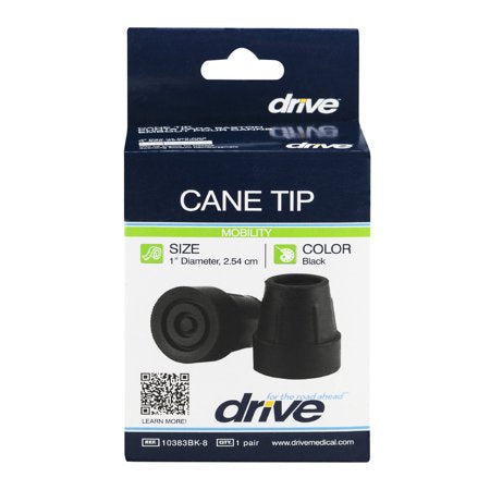 Drive Cane Tip 1" Black - 2 CT.Drive for the road ahead?.1 pair.FSA feds.Flexible spending account.May be eligible for flexible spending account reimbursement.Fits canes with 1" (2.5 cm) leg diameter.If the cane's leg falls between the dashed line and the outside edge, this tip will fit your cane.EU authorized representative Drive Medical LTD Ainley's Industrial estate Elland, West Yorkshire.United Kingdom HX5 9JP.Drive is a trademark of Medical Depot, Inc.Call us toll-free 866-694-5085.www.drivemedical.com.2013 Medical Depot, Inc.All rights reserved.