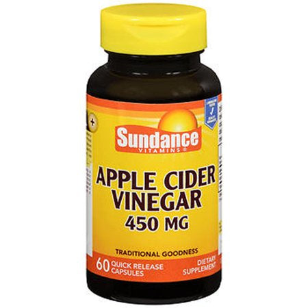 Product Description Sundance Vitamins Apple Cider Vinegar Capsules 450 mg are dietary supplements. Each capsule contains 450 milligrams of apple cider vinegar. The suggested adult dosage is one to three capsules daily preferably with a meal. These capsules are free of yeast wheat milk or milk derivatives lactose sugar preservatives artificial colors and artificial flavors . Free of yeast wheat sugar and lactose No artificial colors or flavors