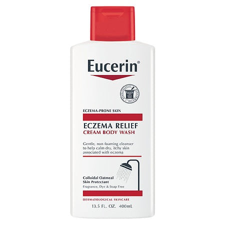 Eucerin Eczema Relief Cream & Body Wash is made with a gentle non-foaming body wash for eczema that helps to calm the dry itchy skin associated with eczema. This gentle body wash eczema cream is specifically designed for sensitive skin and is enriched with Colloidal Oatmeal to help protect and soothe. For sufferers of eczema it is essential to protect the moisture barrier and eliminate potential irritants. That s why Eucerin Eczema Relief Cream & Body Wash is based on clinically-proven Eucerin Eczema Relief moisturizer technology and is also made with a non-foaming body wash. Eucerin Eczema Relief Cream & Body Wash skin care for eczema is soap free fragrance free dye free and paraben free and this cream for eczema is gentle enough for everyday use. Eucerin is a dermatologist-recommended skin care brand that is based on an uncompromising approach to science. With skin care products designed to restore and sustain healthy-looking skin families everywhere look to Eucerin to enhance outer beauty and sel