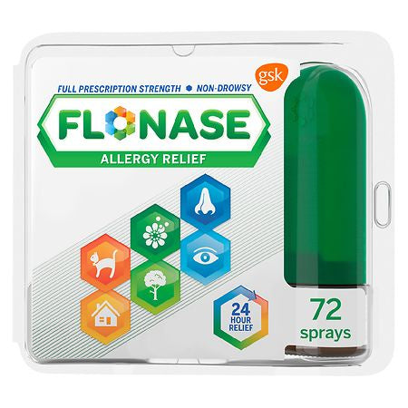 Unlike most allergy pills*, Flonase Allergy Relief Nasal Spray relieves sneezing, itchy, watery eyes and runny nose, plus nasal congestion. This allergy spray delivers powerful, multi-symptom, non drowsy allergy relief for even your worst seasonal, year-round, indoor and outdoor allergy symptoms. Flonase nasal spray provides all-in-one 24 hour allergy relief of symptoms caused by allergens including pollen, mold, dust and pet dander. Flonase is the #1 doctor rmended brand? in allergy relief, and fluticasone propionate nasal spray is #1 prescribed allergy medicine.**To use, shake the bottle gently, prime the bottle for use by pumping until a fine mist appears, then spray up to two sprays directly in your nose.* vs. Single ingredient antihistamines which do not treat nasal congestion.** Based on IMS Health Monthly TRx Allergy Market for 12-month period ending 2/28/18.? Among OTC Allergy Medications based on most recent physician's survey dated 3/31/20. Size: 72 sprays. Age Group: adult.