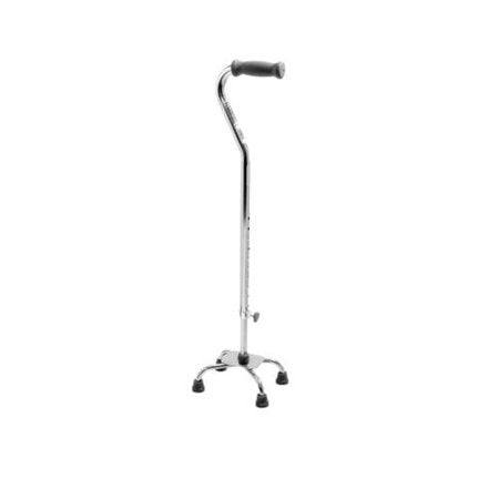 Canes with four feet allow for greater weight-bearing and stability than single-point canes. Non-skid rubber tips on all four feet ensure long life. Small base design allows for a faster pace; large base design gives more stability at a slower pace. Quad canes stand up on their own.