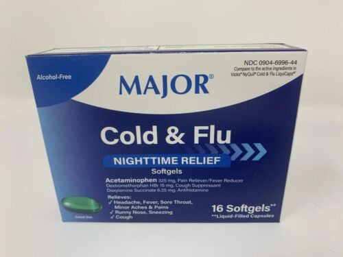 MAJOR COLD & FLU NIGHTTIME RELIEF 16 SOFTGELS