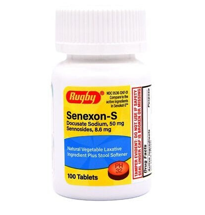 Rugby Senexon-S (generic Senokot-S) Laxative - Docusate 50mg/Senna 8.6mg - 100ct