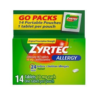 ZYRTEC GO PACKS 10MG TABLETS - 14C